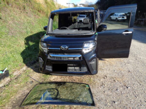 飛び石で割れたフロントガラスの交換をさせていただきました。